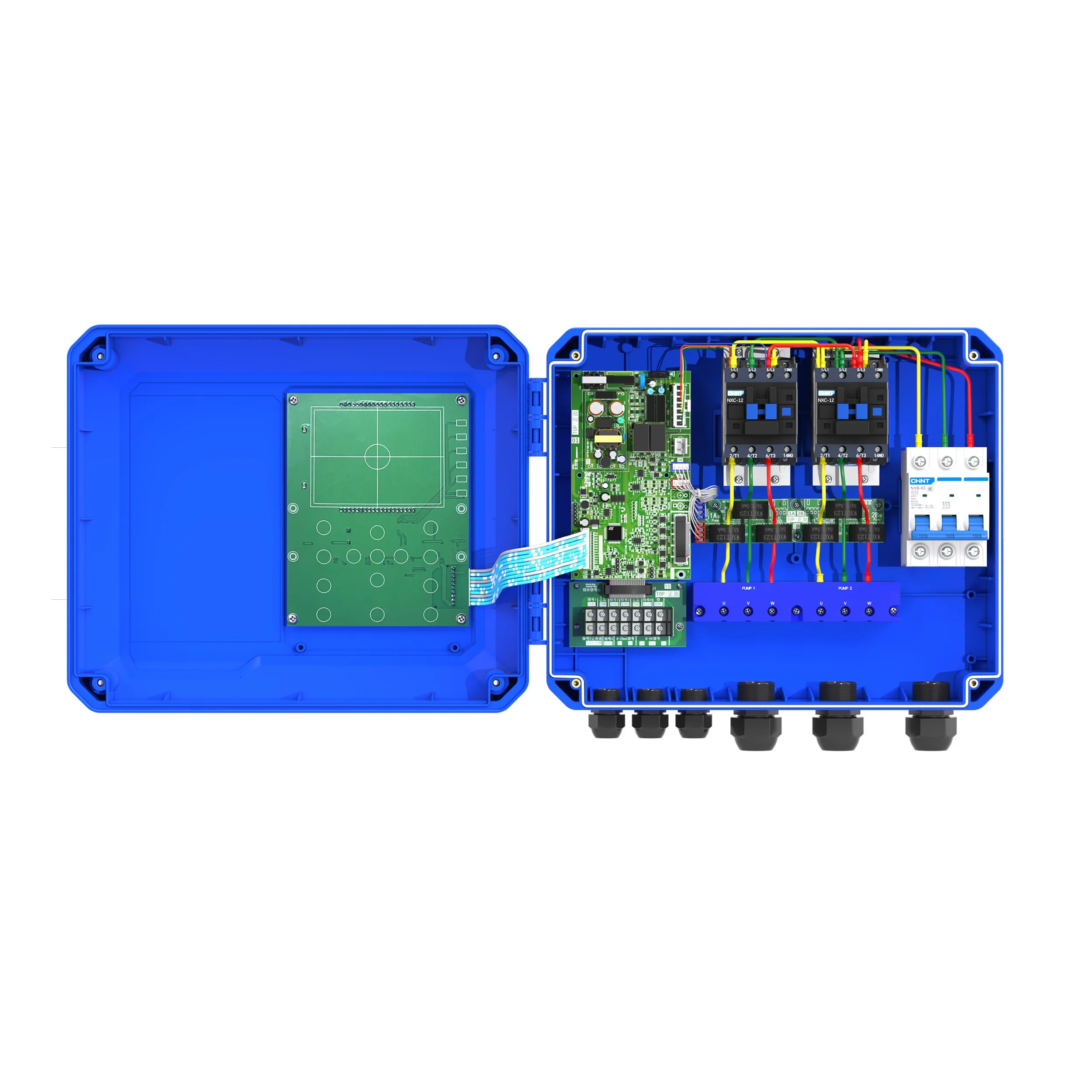 Chemical plant backup pump systems, hospital dual water supply. This3 phase dual pump intelligent control box ensures 24/7 uninterrupted operation via dual pump duty/standby + Modbus protocol, seamlessly integrating with central control platforms.